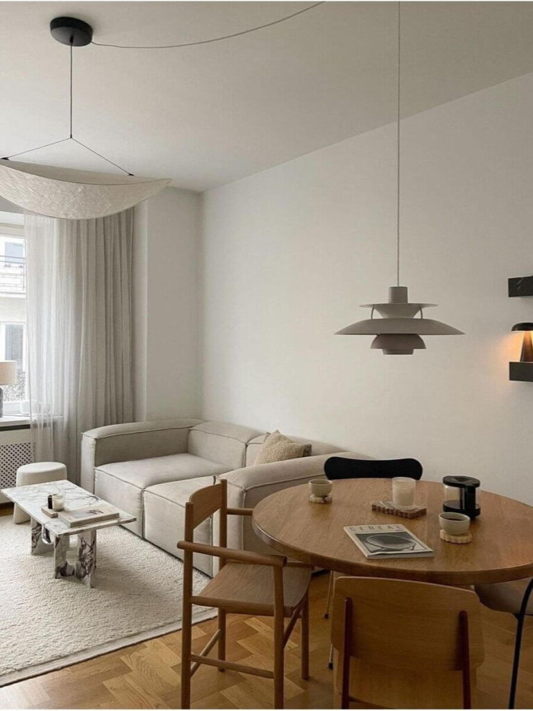 - Functionality: Fewer pieces mean each one must earn its place — multifunctional furniture becomes essential. A sofa with hidden storage, a coffee table that doubles as a tray or bench, or a floating cabinet that doesn’t touch the floor can serve multiple needs without cluttering.
