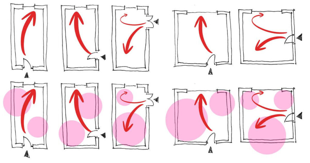 - Circulation – how people move through the space