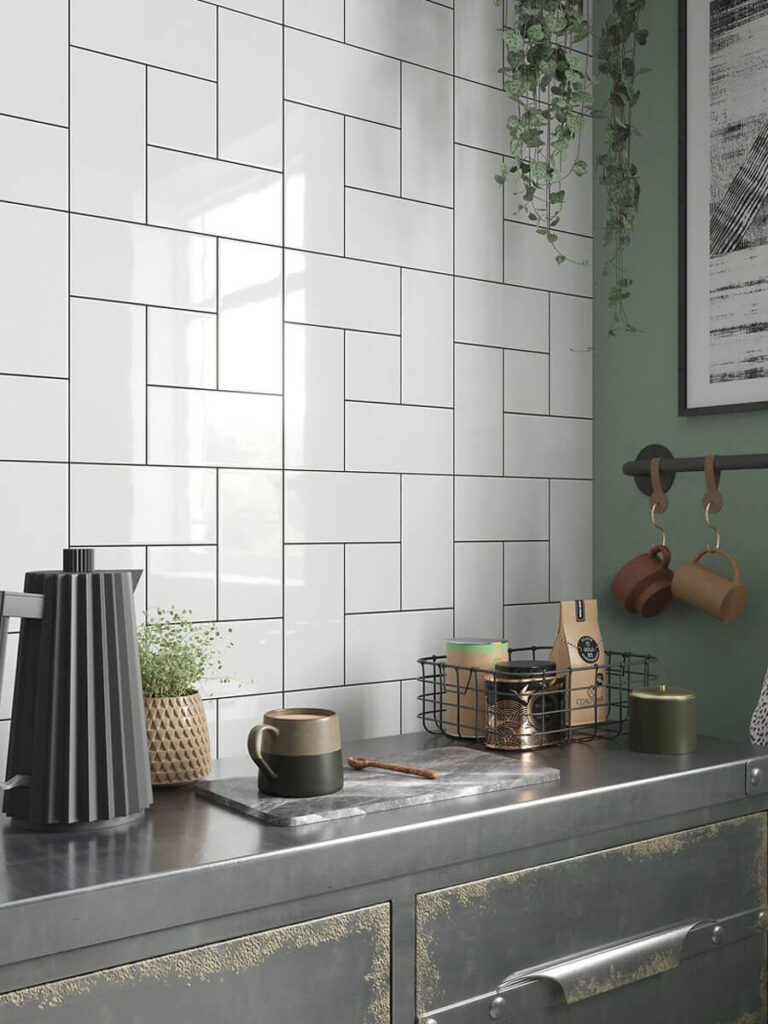 Light grout blends with white tiles, creating a seamless, calm background. Dark or contrasting grout emphasizes geometry, turning the tile layout into a strong visual feature.